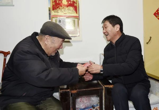 趙廷周走進(jìn)85歲高齡的退休職工賈兆元家中,與老人親切交談,噓寒問暖,仔細(xì)詢問老人的身體健康狀況??吹嚼先朔e極樂觀的良好心態(tài),趙廷周感到由衷高興,將慰問金交到賈老手中并祝福春節(jié)快樂。隨后,趙廷周看望慰問了退休職工任進(jìn)才。他親切詢問老人的家庭生活和身體情況,了解子女工作情況,得知老人患有腦梗及帕金森綜合癥時(shí),囑咐老人子女要照顧好任老的生活起居,讓老人安享晚年。