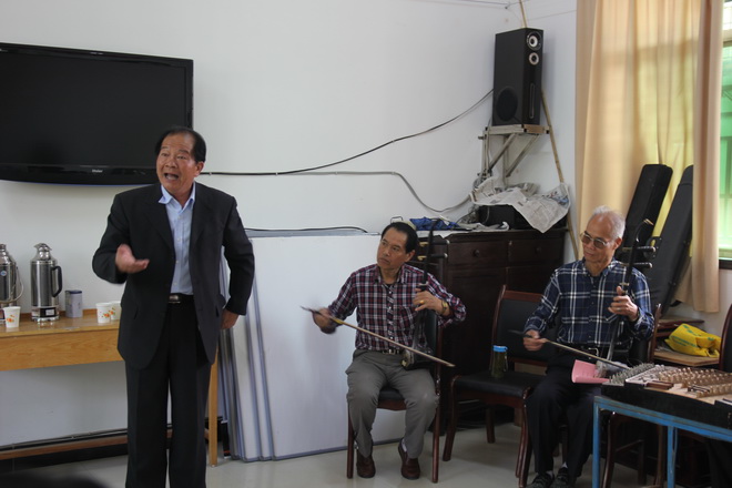 李主任一行來到我隊,顧不上旅途的勞累,直奔正在積極準備的秦腔演出現場。在看到秦“迷”們井然有序的安排和精心的準備后,李主任非常滿意。隨后,秦“迷”們分別就自己拿手的秦腔節(jié)目做了匯報演出,國家一級演員任炳漢對每位秦“迷”唱腔、演功及伴奏做一一點評,并肯定每位秦“迷”們對秦腔傳統(tǒng)藝術的熱愛,以及對傳統(tǒng)藝術傳承的執(zhí)著精神。對基層秦“迷”們能提供這樣的一個活動場所的單位領導表示感謝。在大家的盛情邀請下,任炳漢先生進行了示范表演。