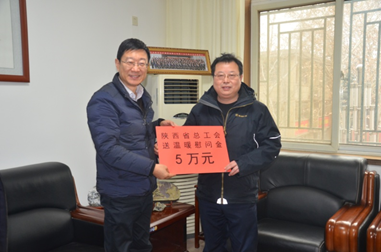 春節(jié)將至,暖意濃濃。各級領(lǐng)導(dǎo)心系困難職工。1月24日下午,陜西省總工會黨組成員、副主席張永樂一行5人,深入我公司開展送溫暖活動。集團(tuán)公司黨委委員、副總經(jīng)理、工會主席白林科,工會常務(wù)副主席張漢軍等陪同慰問。張永樂詳細(xì)了解了公司生產(chǎn)經(jīng)營情況與發(fā)展中面臨的困難與問題,以及“春節(jié)”前我公司幫扶服務(wù)工作的開展情況。張永樂副主席充分肯定了我公司的各項(xiàng)工作,代表省總向公司廣大職工致以新春的問候!努力把以習(xí)近平同志為核心的黨中央對廣大職工群眾的關(guān)心關(guān)懷送到職工群眾的心坎上。座談會后,張永樂一行先后到因病致困職工王玉霞和西安市勞動模范董紅毅家中進(jìn)行了走訪,仔細(xì)了解了他們的生活情況,并送上慰問金和慰問品。