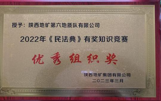 近日,在集團公司組織的《民法典》知識競賽活動中,我公司榮獲優(yōu)秀組織獎,獲這一殊榮的還有5家兄弟單位。我公司員工周青、劉曉龍、王敏鵬三名同志榮獲優(yōu)秀獎。